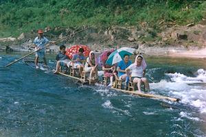 徽水河漂流途經五大景區:起筏地叫龍潭,灘長浪急,游人在竹筏上隨浪俯仰,跌宕穿梭,一種戰勝大自然的酣暢淋漓之感油然而生。接下來是
